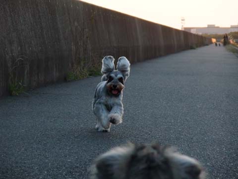 堤防散歩をしていたら、遠くから何かがぴょんぴょん跳ねてくる。
