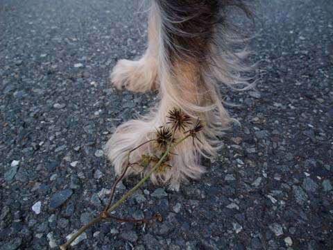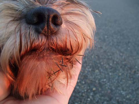 こすけ、この草に顔から突っ込むのでひげとかにくっつくんだよね。