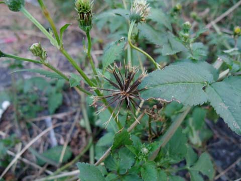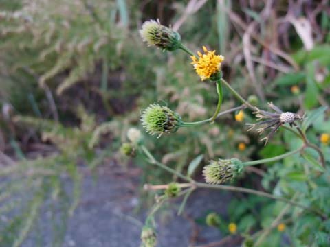 黄色い花が枯れて種の束になります。