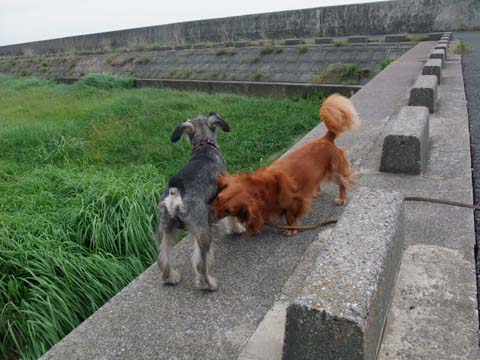 今日はお友達に会えないなーなんて思いながら堤防散歩。