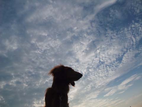 同じ時間に撮ったんですが、がじろーは夕日バック、こすけは青空です。