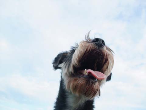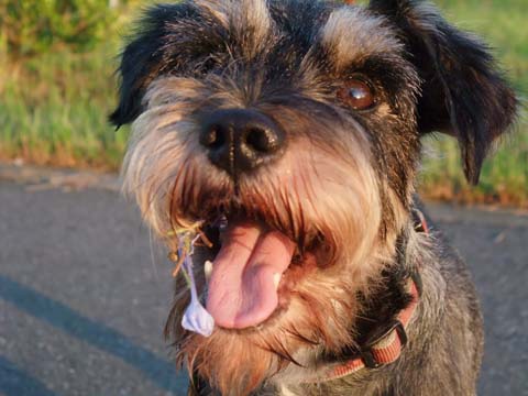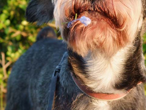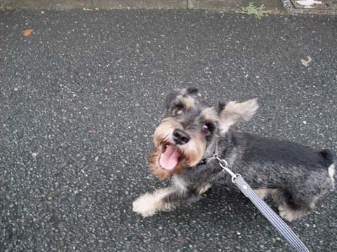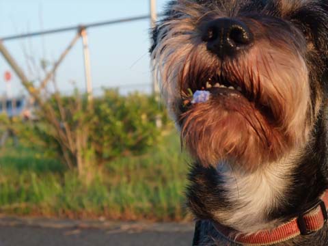 駐車場で車を降りてちょっと歩いたところでこすけの顔に何かが付いているのに気づいた。