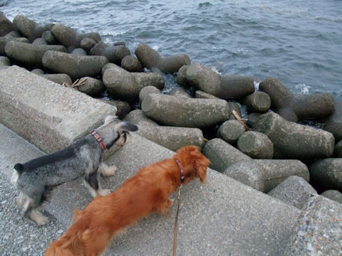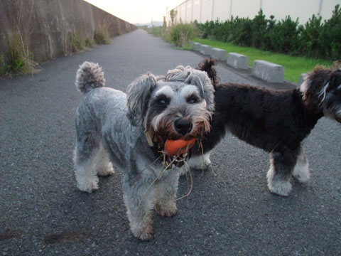 今日も堤防散歩であんず一家と一緒でした。
