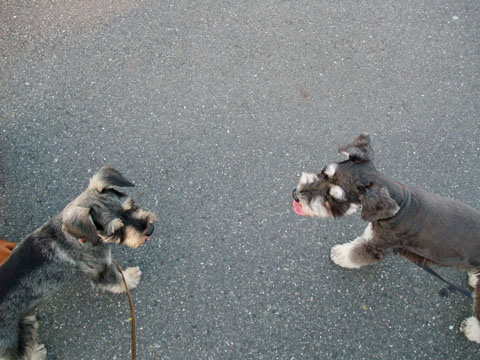 以前からあんずママと話していたんですが、ガウガウと激しくバトルしている割には、お互い噛み付く気配がない。
