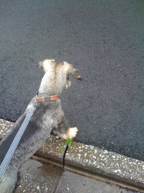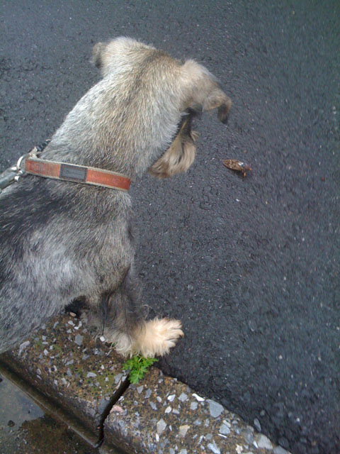 昼過ぎ、道路も乾いていたので散歩へ行こうとしたらまたもや雨。