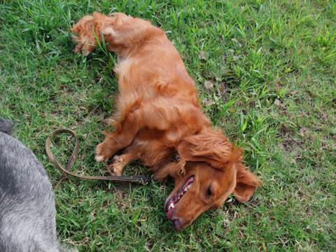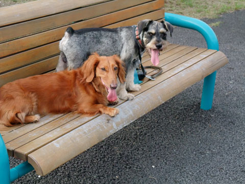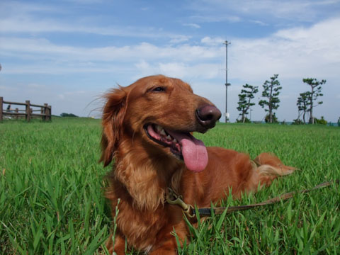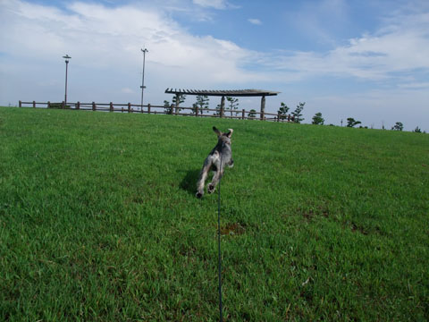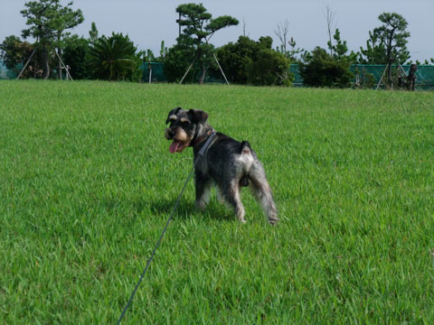 お父ちゃんが暑さに負けて気持ち悪くなってきたので、ここで散歩終了。