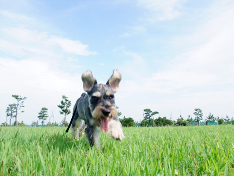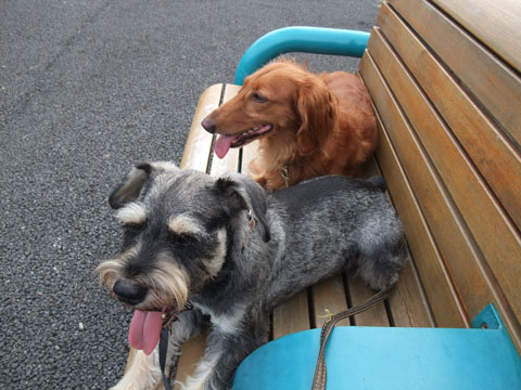 初めて会うシュナが来たんですが、いつもならガウするこすけも暑くて全くガウしませんでしたw