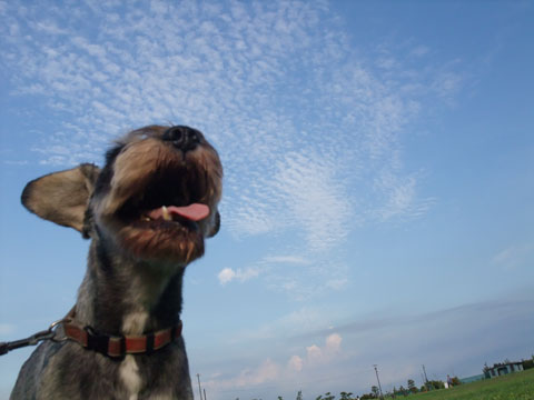 堤防散歩を戻る間、またあんずにボールを土手下に投げられて遊ばれるおいら。