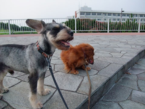せっかく端っこまで行って戻ってきたのに、がじこすにつきあってまた端っこまで一緒に散歩。
