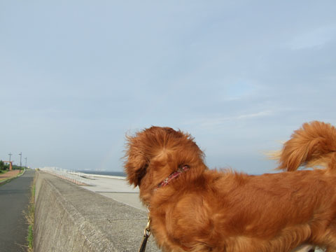 うっすらとした虹ががじろーの頭をかすめてます。